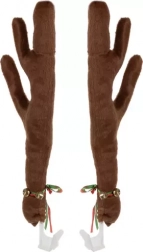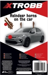 Montaj rapid și simplu: Decorurile se fixează ușor cu cleme din plastic pe geamurile mașinii. Nasul se atașează cu un fir elastic pe partea din față a mașinii.