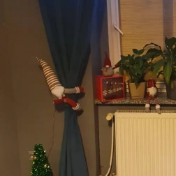 Crează acasă o atmosferă caldă de Crăciun cu spiridușul decorativ, care nu doar înfrumusețează, ci poate și prinde practic draperiile. Corpul moale, barba pufoasă și căciula tricotată oferă un aer călduros de iarnă, în timp ce benzile velcro de la capetele brațelor și picioarelor permit prinderea ușoară de textile sau balustrade.