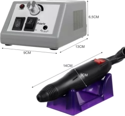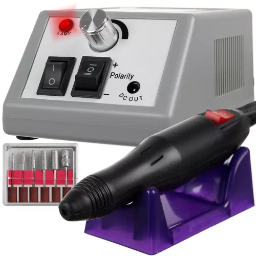 Baza stabilă cu piciorușe antiderapante rămâne ferm pe loc, iar sistemul protejat împotriva supraîncălzirii asigură funcționare sigură. Montarea simplă a frezelor (diametru standard 2,35 mm) accelerează lucrul și îmbunătățește atât igiena, cât și aspectul final al unghiilor.