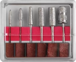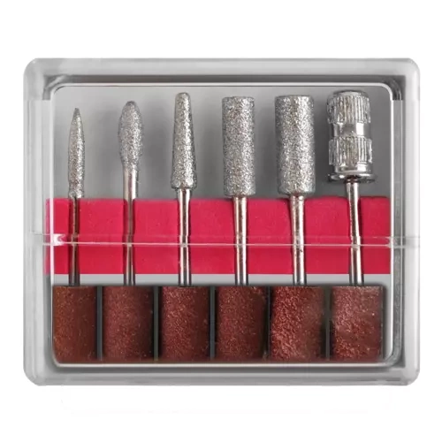 Include 6 freze diamantate și 6 inele abrazive pentru îndepărtarea gelului/acrilului, îngrijirea cuticulelor și finisare netedă.