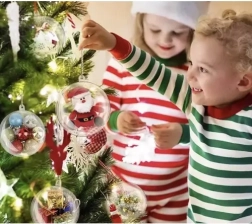 Aceste globuri transparente se deschid ușor în două jumătăți, astfel încât le poți umple cu propriile decorațiuni – de la pene și panglici până la dulciuri. Datorită suprafeței clare, pot fi pictate pe interior și pe exterior și combinate cu tehnici precum decoupage sau home decor. Vei crea astfel ornamente unice care subliniază atmosfera Crăciunului.