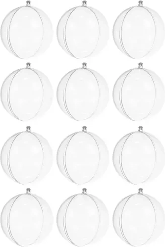 Globuri de Crăciun transparente, demontabile, 8 cm, set de 12 buc. Nesfărâmicioase, ideale pentru DIY, pictură și umplere cu sclipici sau zăpadă. Șnururi pentru agățare incluse.