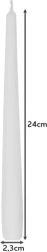 Creează o atmosferă plăcută cu lumânările conice albe, care completează perfect masa festivă și decorul interior. Datorită înălțimii de 24,5 cm și diametrului subțire de 2,3 cm, au un aer elegant și se potrivesc în majoritatea sfeșnicelor clasice.