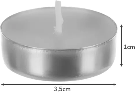 Pachet mare 100 buc de lumânări tip pastilă cu timp de ardere până la 3 ore pentru a crea o atmosferă plăcută și pentru utilizare practică. Datorită amestecului de parafină de calitate, lumânările nu fumegă, nu murdăresc și ard complet. Sunt fără parfum, în recipient metalic și excelente pentru lămpi de aromaterapie, sfeșnice și pentru menținerea mâncării calde.