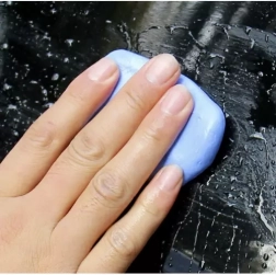 Folosirea este ușoară: rupeți o bucată de lut, modelați un disc plat și, folosind șampon auto, treceți-l peste suprafață. Dacă lutul se murdărește, frământați-l până expuneți o parte curată.