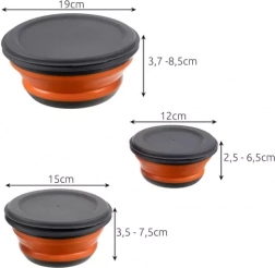Setul conține boluri cu volume de 0,4 l, 0,85 l și 1,65 l, acoperind diverse nevoi de depozitare a alimentelor. Construcția pliabilă permite depozitarea ușoară.