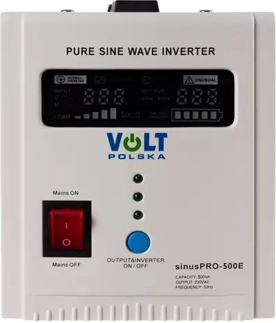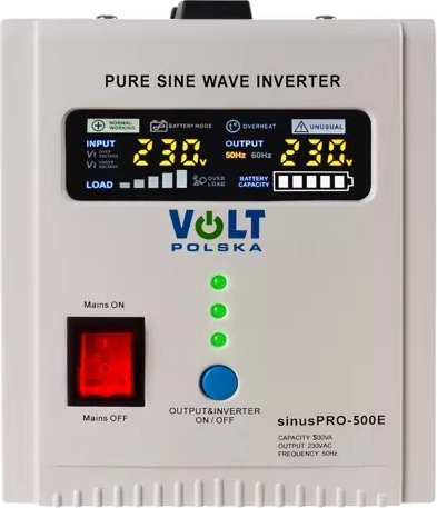 Experimentați soluția revoluționară cu sursa de rezervă multifuncțională Volt Polska sinusPRO-500E. Acest dispozitiv reprezintă combinația ideală între un convertor DC/AC, UPS și încărcător automat. Ecranul său color vă oferă un instantaneu al celor mai importante parametri, precum tensiunea rețelei, tensiunea acumulatoarelor, starea de încărcare sau capacitatea.