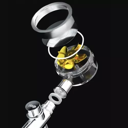 Capul de duș cu turbină economisește până la 40% din apă, în timp ce menține o presiune ridicată pentru un duș plăcut.