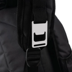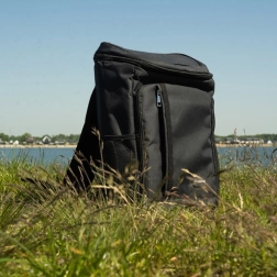 Dispunerea gândită a buzunarelor oferă spațiu pentru tacâmuri, farfurii și mărunțișuri. Pe bretea este integrat un deschizător de sticle, util în orice aventură în aer liber. Căptușeala și reglarea completă a bretelor asigură confort chiar și la încărcare maximă.