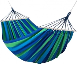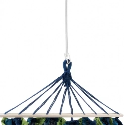 Hamacul este realizat din bumbac cu adaos de poliester, ceea ce asigură o senzație plăcută la atingere și o durabilitate mare. Oferă o ventilație corespunzătoare, ideală pentru zilele toride.
