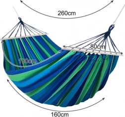 Îl puteți transporta cu ușurință datorită husei incluse. Ideal pentru camping sau excursii în natură. Barele de lemn asigură stabilitate și permit să vă întindeți confortabil.