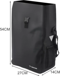 Materialul genții este fabricat din poliester durabil și rezistent la apă cu adaos de PVC. Elementele de siguranță includ elemente reflectorizante ce cresc vizibilitatea după lăsarea întunericului. Echipază-ți bicicleta pentru o călătorie sigură și stilată în orice condiții meteo.