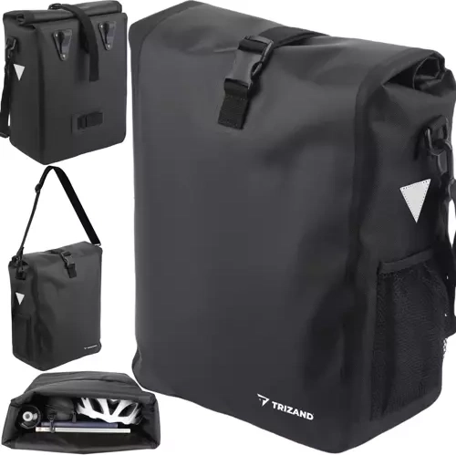Descoperă confortul și utilizarea practică a geanții de bicicletă Trizand, care se adaptează ușor tuturor tipurilor de biciclete cu portbagaj. Prindere rapidă posibilă cu cârlige și scai.