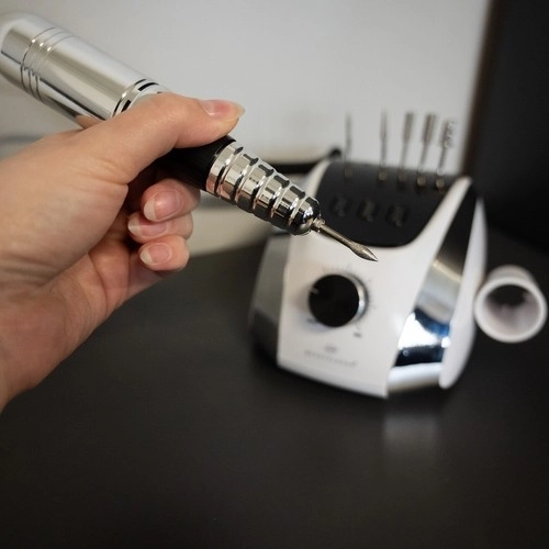 - Specificații tehnice – Culoare: alb/argintiu/negru; Material: ABS; Alimentare: 110V-240V 50-60Hz; Viteză maximă: 35,000 rot/min; Diametrul standard al frezei: 2,35mm; Protecție la supraîncălzire și schimbare a direcției rotației disponibile.