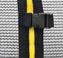 Instalarea este rapidă și simplă: plasa se prinde de 8 stâlpi și partea inferioară se fixează cu șnur. Intrarea este echipată cu fermoar și catarame de siguranță pentru o protecție sporită la sărit. Datorită dimensiunilor universale, este compatibilă cu trambuline ale diferiților producători.