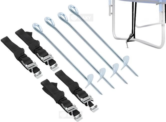 Acest set de ancore oferă o soluție sigură și fiabilă pentru fixarea trambulinelor în grădină, protejând echipamentul de vânturi puternice și asigurând stabilitate maximă.