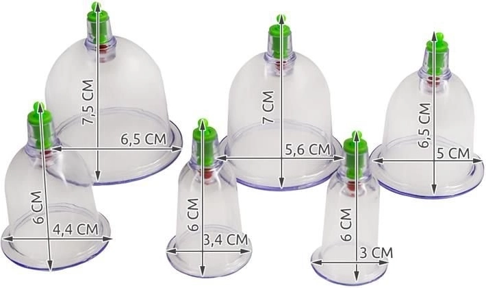Diferitele dimensiuni permit ajustarea exactă pentru zona dorită – de la spate și coapse la brațe sau gambe. Terapia cu vacuum poate ajuta la reducerea edemelor, relaxarea mușchilor înțepeniți și susținerea proceselor naturale de refacere. Aplicarea este simplă și confortabilă datorită pompei manuale, care asigură un vacuum stabil.