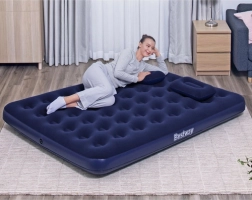 Bucurați-vă de confort oriunde – salteaua pentru două persoane BESTWAY Queen, cu dimensiunile 203 × 152 × 22 cm, este ideală pentru interior și pentru cort. Suprafața moale din velur este plăcută la atingere, iar construcția internă Coil‑Beam imită arcurile unei saltele clasice și oferă stabilitate și distribuție uniformă a greutății.