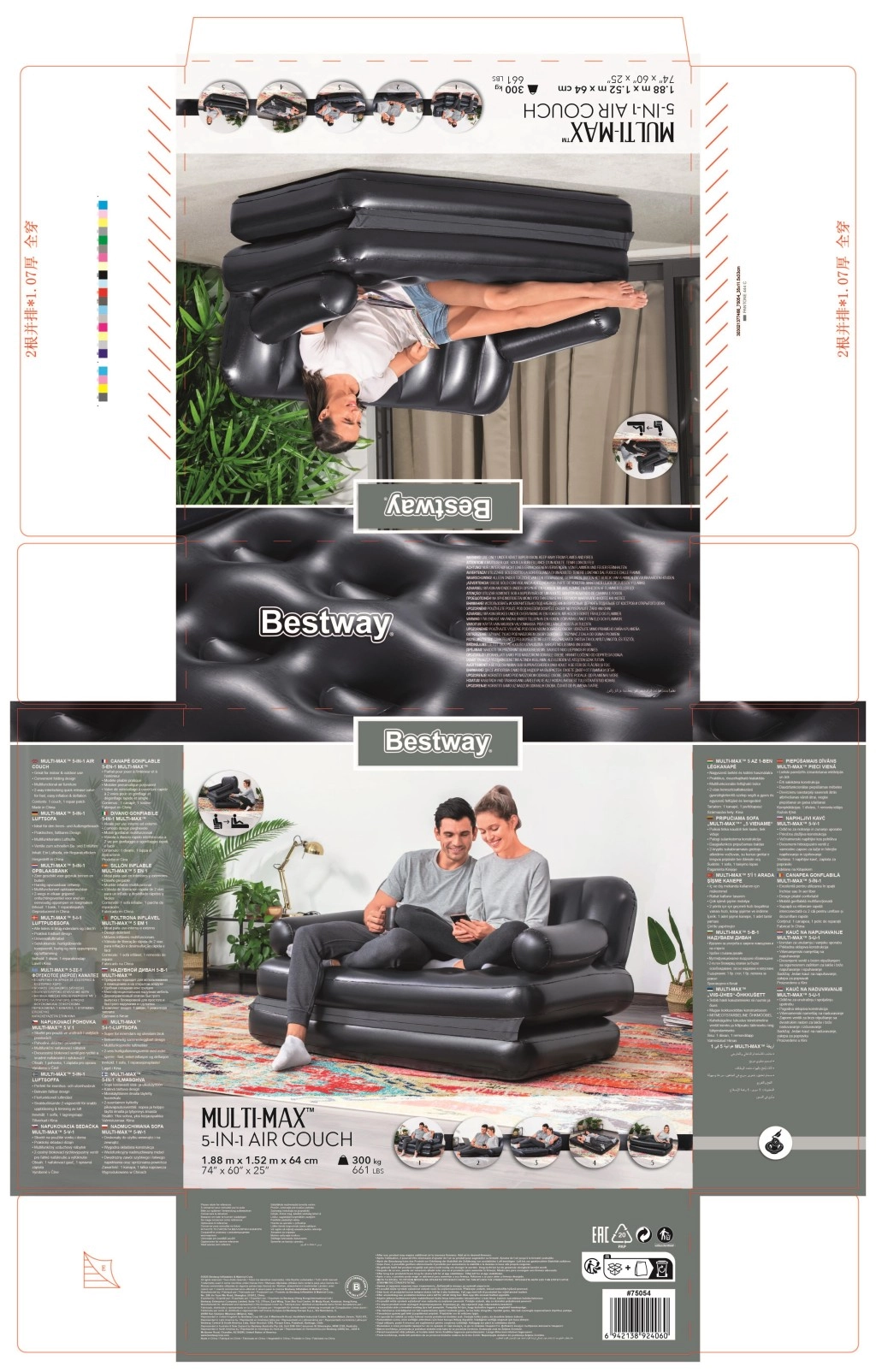 Canapeaua gonflabilă BESTWAY 5 în 1 este soluția ideală pentru living, camera de oaspeți sau locuința de studenți. Datorită designului modular inteligent, o transformi în câteva clipe dintr-o canapea confortabilă pentru două persoane într-un șezlong sau într-un pat dublu complet. Suprafața catifelată cu camere mărește confortul la ședere și somn.