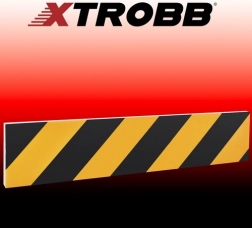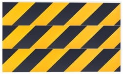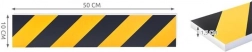 Dungile diagonale galben‑negre funcționează ca avertizare optică și facilitează aprecierea distanței față de perete.