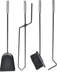 Setul conține tot ce aveți nevoie pentru o operare sigură și curată a șemineului: cârlig/poker, clește, lopățică, perie și suport cu scut de protecție și mâner pentru transport ușor. Oțelul robust și execuția solidă garantează o durată de viață lungă, în timp ce baza suportului reține praful și cenușa pentru a menține locuința curată.