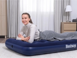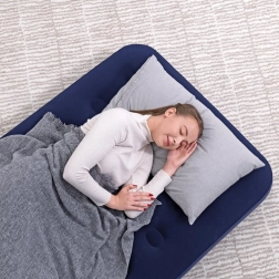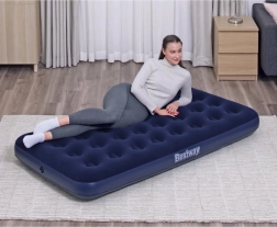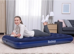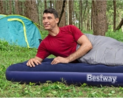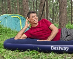 Bucurați-vă de un somn confortabil oriunde. Patul gonflabil de o persoană BESTWAY combină PVC rezistent și velur plăcut pentru o suprafață comodă, fără alunecarea lenjeriei. Construcția internă coil-beam distribuie uniform greutatea și garantează stabilitate pe tot parcursul nopții.