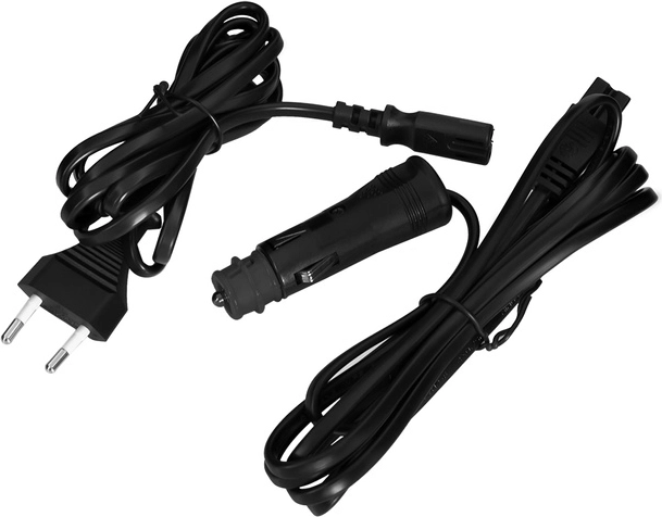Pachetul include ambele cabluri – pentru 220–240 V și pentru bricheta auto de 12 V. Ideal pentru mașină, birou, casă de vacanță și camping.