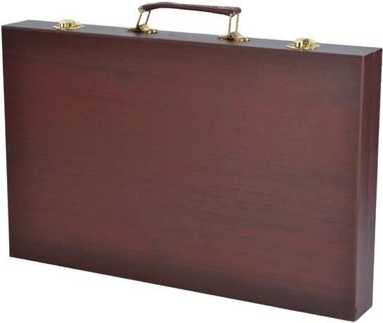 Toate materialele de artă sunt aranjate ordonat într-o servietă pliabilă din lemn, cu compartimente, astfel încât aveți mereu acces rapid și ușor la tot ce aveți nevoie.