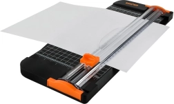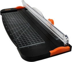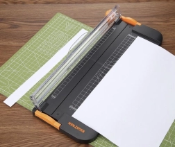 Scala integrată în centimetri și inci, grila și rigla de ghidaj transparentă permit așezarea hârtiei cu precizie la milimetru și tăierea drept sau în unghi.
