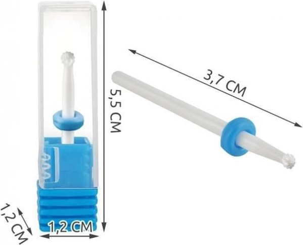 Freză ceramică de precizie în formă de bilă pentru îngrijirea delicată a cuticulelor la unghiile de la mâini și picioare. Datorită materialului din oxid de zirconiu și faptului că nu se încălzește în timpul lucrului, asigură îndepărtarea fină și eficientă a pielii în exces fără vibrații și fără a deteriora placa unghială. Ax universal pentru „twist and lock” și etui igienic de călătorie pentru depozitare ușoară.