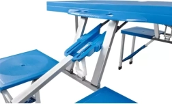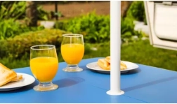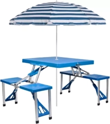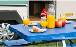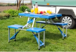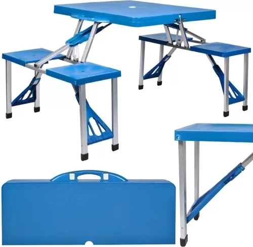 Patru scaune integrate oferă confort la picnic sau în camping. Ideal pentru familii și prieteni.