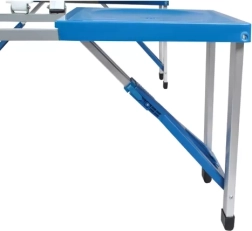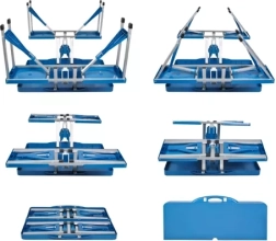 Masa se transformă după pliere într-o geantă practică cu mâner. Deschiderea și plierea sunt rapide și sigure datorită zăvoarelor de blocare.