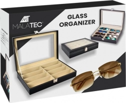 Acest organizer de calitate pentru ochelari de la SOULIMA îmbină designul elegant cu o compartimentare practică. Pielea ecologică neagră cu cusături albe arată reprezentativ, iar inserția interioară deschisă la culoare evidențiază clar fiecare pereche. Capacul din sticlă oferă atât o privire rapidă, cât și o expunere decorativă.