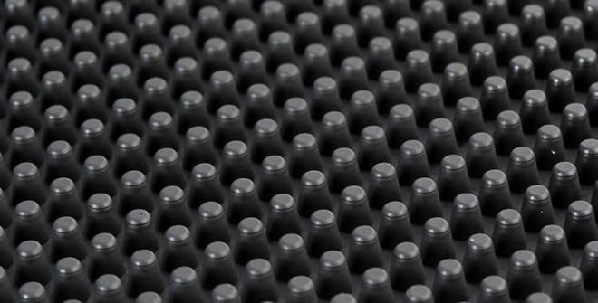 Suprafața texturată cu proeminențe înalte favorizează circulația aerului și scurgerea rapidă a apei, astfel încât vasele se usucă repede și igienic.