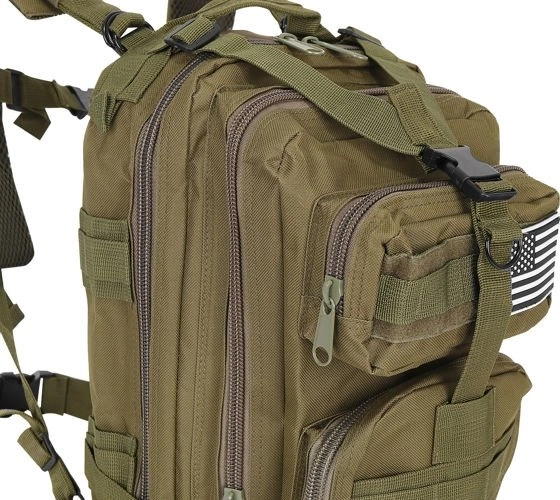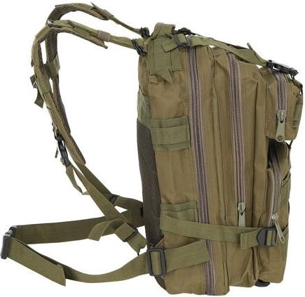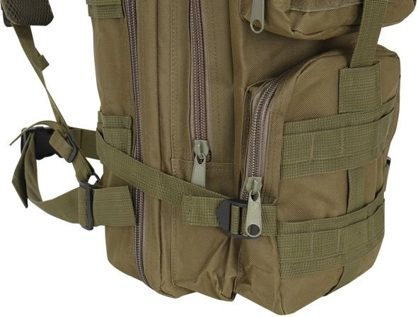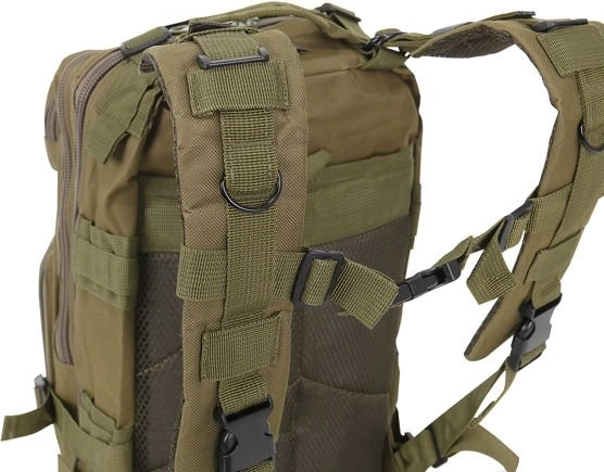 Acest rucsac este alegerea perfectă pentru turiști și entuziaști militari. Este echipat cu două compartimente principale spațioase și mai multe buzunare mai mici, care oferă suficient spațiu pentru stocarea diverselor echipamente. Curelele de umăr reglabile și căptușite asigură un purtat confortabil, în timp ce cusăturile întărite îi cresc durabilitatea. Datorită materialului impermeabil, conținutul rucsacului rămâne protejat chiar și pe vreme nefavorabilă.