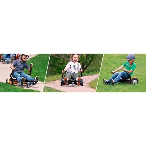 Bucură-te de un nou nivel de distracție – atașamentul transformă hoverboardul tău cu două roți într-un kart jos, stabil și ușor de controlat. Mulțumită direcției intuitive cu două manete, accelerezi, frânezi și virezi cu ușurință. Scaunul ergonomic și mânerele antiderapante din spumă cresc confortul și siguranța în timpul mersului.