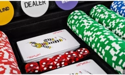 În dotare găsești două pachete de cărți, jetoane DEALER, SMALL BLIND și BIG BLIND – totul pentru un joc lejer acasă și format de turneu fluent.