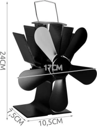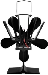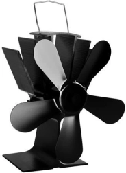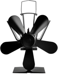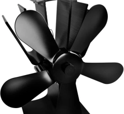 Ventilatorul de sobă cu 5 pale, din aluminiu și oțel inoxidabil, crește eficiența încălzirii prin distribuirea uniformă a aerului cald de la sobă în încăpere. Datorită modulului termoelectric, funcționează complet fără baterii și fără electricitate – cu cât temperatura plitei este mai ridicată, cu atât elicea se rotește mai repede.
