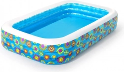 Piscina de familie BESTWAY, cu imprimeu floral atrăgător, transformă grădina într-o oază de vară. Se umflă ușor, se umple rapid și este gata pentru joacă și relaxare în câteva clipe. Construcția robustă din PVC gros (0,32 mm) rezistă distracțiilor verii, păstrând în același timp un confort plăcut.