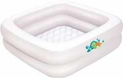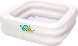 Cădița/piscina gonflabilă Bestway BABY STEP 1-2-3 oferă bebelușului un mediu confortabil și sigur pentru baie și primele jocuri în apă. Forma pătrată de 86 × 86 cm asigură spațiu suficient, în timp ce fundul gonflabil este moale, plăcut și ajută la prevenirea alunecării.