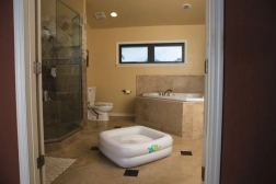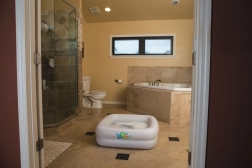 Fundul gonflabil integrat oferă copiilor confort la ședere și joacă și, în același timp, ajută la reducerea riscului de alunecare în timpul băii sau stropitului.