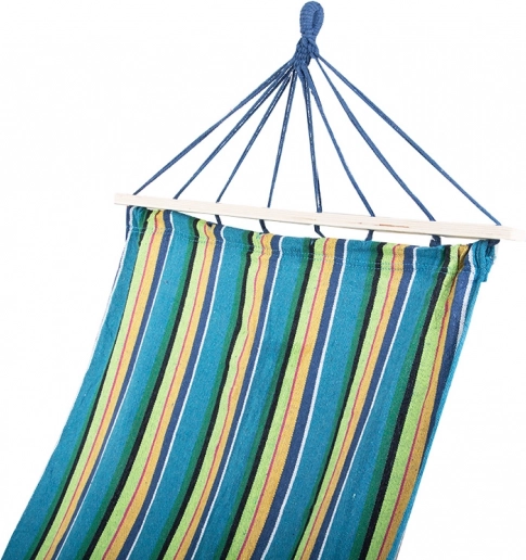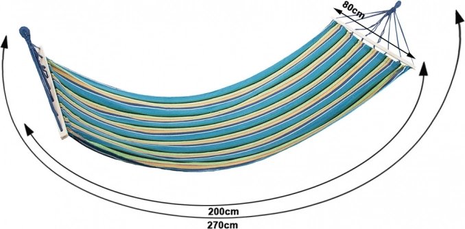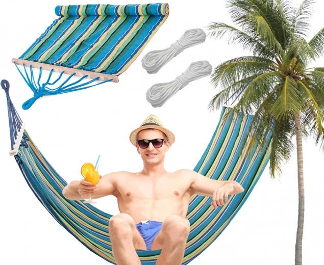 Bucurați-vă de odihna perfectă oriunde, în aer liber sau acasă – acest hamac în dungi, cu bare de întindere din lemn, oferă rezistență ridicată, suprafață de întins confortabilă 200 × 80 cm și montaj ușor. Amestecul durabil de bumbac și poliester este plăcut la atingere și respirabil, cu sarcină maximă de 150 kg. Include șnururi de prindere pentru agățare rapidă între copaci, pe stativ sau pe suporturi.