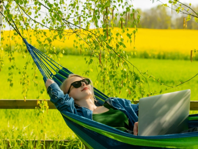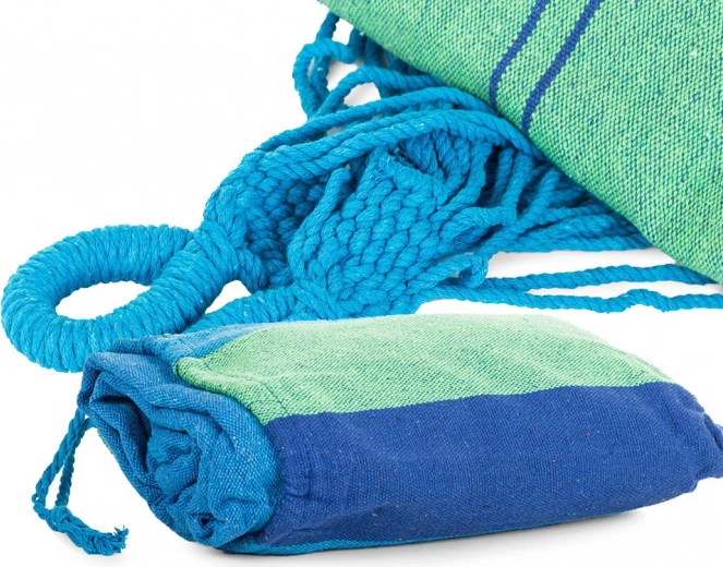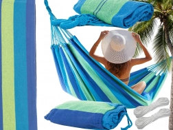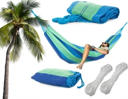 Suprafața lată pentru întins oferă confort maxim pentru două persoane, în timp ce frânghiile solide și cusăturile de calitate asigură stabilitate și siguranță. După pliere ocupă foarte puțin loc, iar datorită husei îl poți lua cu ușurință la picnic, camping sau în vacanță.