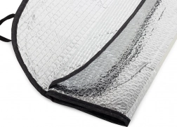 Parasolarul reflectorizant pentru parbriz cu izolație cu bule reduce semnificativ încălzirea interiorului și previne decolorarea tapițeriei precum și deteriorarea electronicii de la soare. Datorită suprafeței reflectorizante pe ambele părți, funcționează fiabil vara împotriva căldurii, iar iarna ajută la prevenirea înghețării geamului.