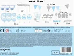Acest set universal pentru prima aniversare creează o atmosferă asortată fără planificare îndelungată. Elementele albastre și argintii au un aspect curat și festiv, astfel încât decorul se evidențiază atât în poze, cât și în timpul petrecerii. Totul este ambalat practic într-o cutie: doar desfaci și începi să decorezi.
