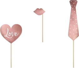 Creați o atmosferă distractivă în colțul foto cu accesorii elegante în combinația alb și roz. Setul include un mix de motive și forme îndrăgite – un accesoriu perfect pentru miri și invitați, care adaugă fotografiilor joc și stil. Produsul este destinat asamblării individuale.