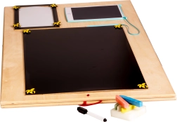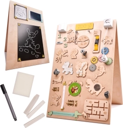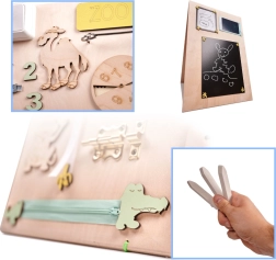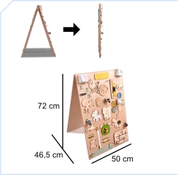 Funcția unică a acestei plăci este față-verso - o parte conține diverse elemente de manipulare, iar cealaltă servește ca suprafață pentru desen și scris cu cretă, markere sau creion. Aceasta ajută copiii să-și dezvolte creativitatea și motricitatea fină.