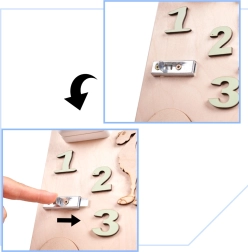 Datorită designului unic față-verso, copiii pot folosi atât partea de manipulare cât și partea pentru scris și desenat.