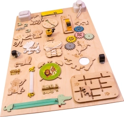 Copiii sunt natural curioși despre lumea din jurul lor. Această placă senzorială permite explorarea diferitelor obiecte și elemente mecanice într-un mediu sigur. Construcția din lemn asigură o durată de viață lungă și o durabilitate mai bună decât jucăriile din plastic.