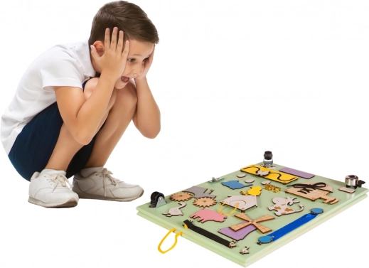 Datorită diverselor părți și suprafețe mobile, această tablă stimulează motricitatea fină și oferă stimulente senzoriale pentru dezvoltare.